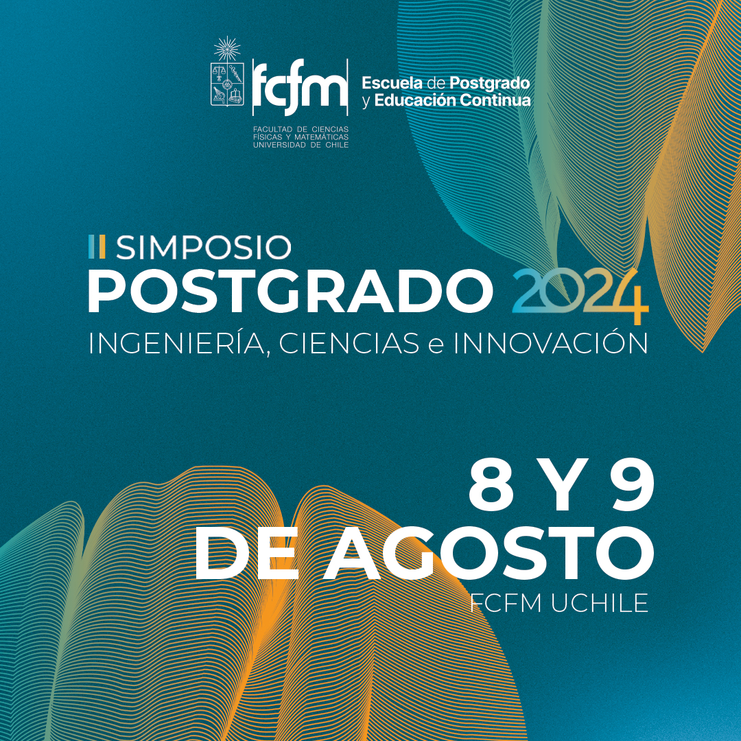 Tenemos el agrado de anunciarles la realización del II SIMPOSIO de Postgrado FCFM el próximo 8 y 9 de agosto, evento organizado por la Escuela de Postgrado y Educación Continua que busca ser un espacio para promover e incentivar la investigación, al permitir que estudiantes, académicas, académicos e investigadores de postgrado presenten sus proyectos y/o tesis.
