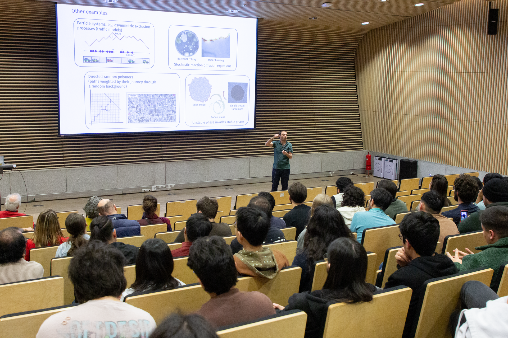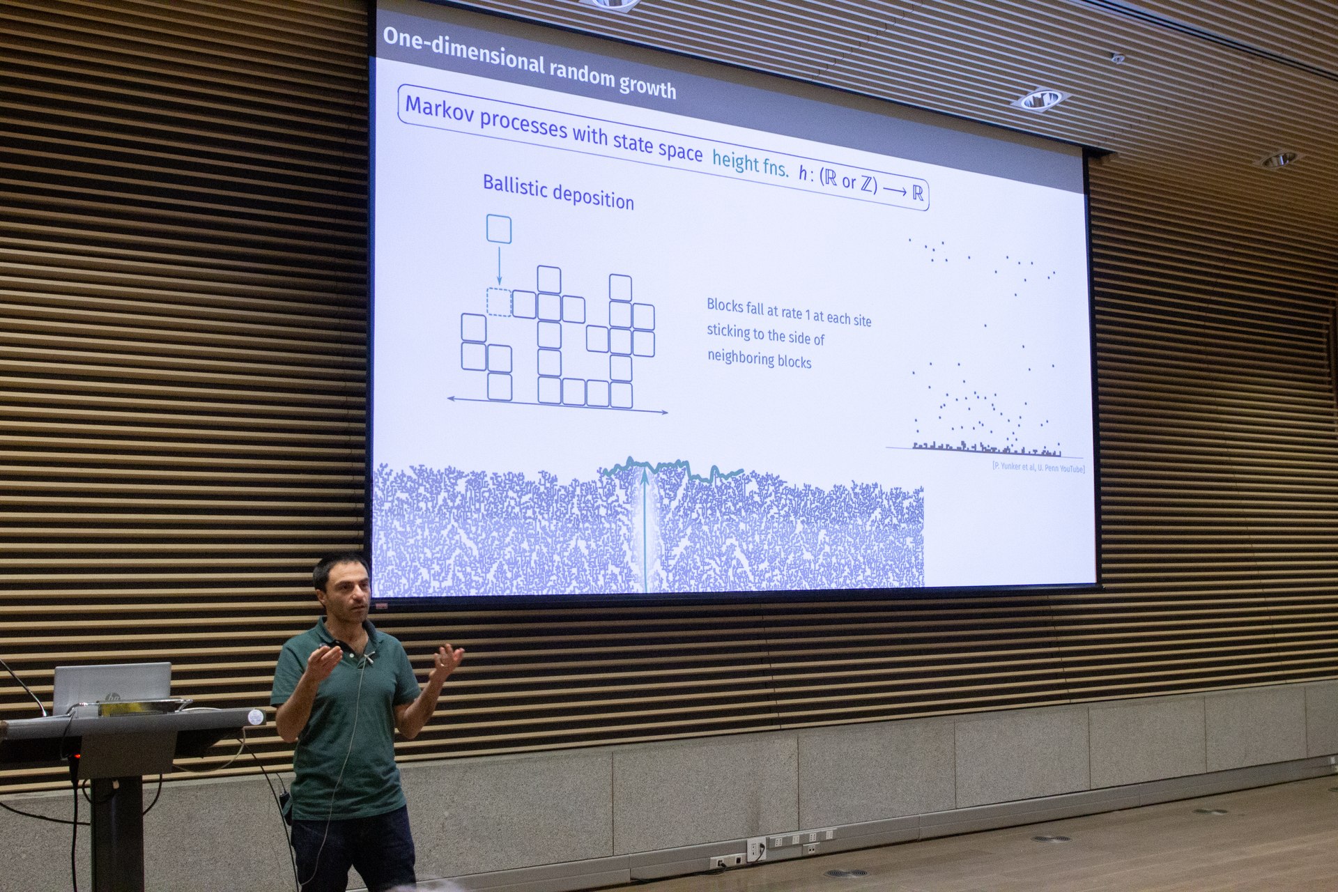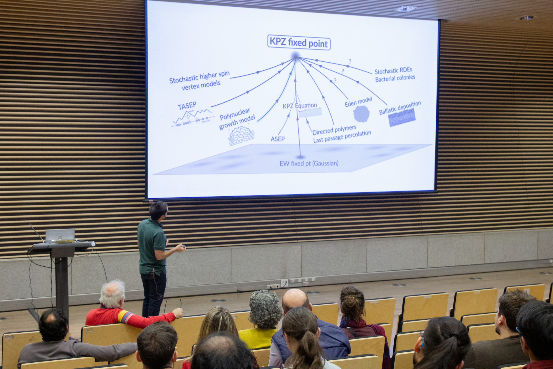 La clase está caracterizada por fluctuaciones que presentan un comportamiento común muy rico, con distribuciones asintóticas que en algunos casos se relacionan con la teoría de matrices aleatorias. Este comportamiento común se caracteriza a su vez mediante un proceso de Markov especial, conocido como el punto fijo KPZ, que surge como el límite universal de todos los modelos de la clase. En esta charla voy a introducir este objeto y explicaré como se obtiene a partir de ciertos modelos especiales en la clase. Luego describiré cómo estas fórmulas conducen a una conexión con una EDP dispersiva famosa en sistemas integrables, la ecuación de Kadomtsev-Petviashvili, y como esta relación permite entender la conexión de estos modelos con distribuciones provenientes de matrices aleatorias.