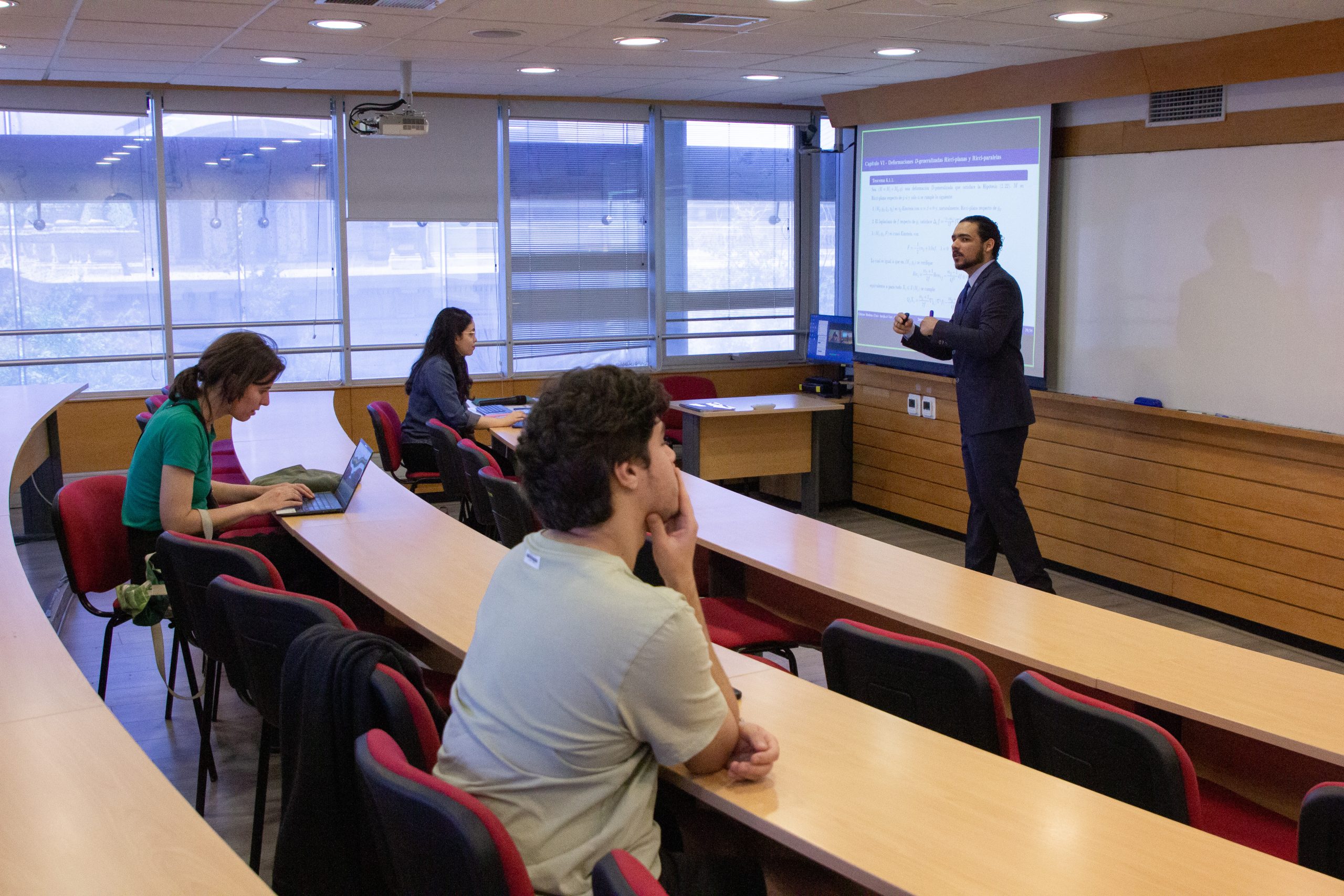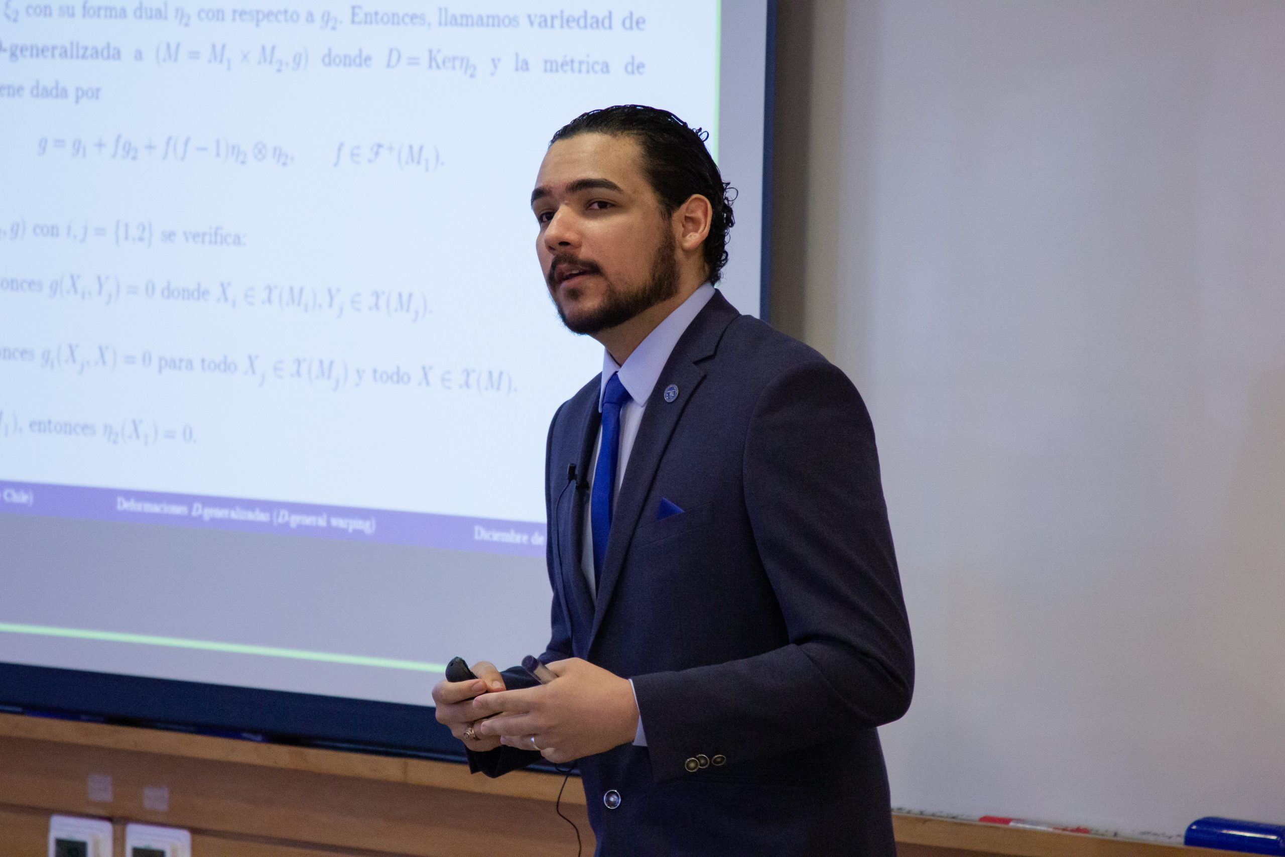 El trabajo de investigación, titulado “Laplaciano, ecuaciones de tipo Einstein y resultados asociados en variedades de deformación D-generalizada”, fue evaluado por una comisión integrada por el Profesor Guía Rodolfo Gutiérrez R., la Profesora Co-guía Rayssa Aires de Lima Caju, el Profesor Integrante-Presidente Alfonso Carriazo R. y el Profesor Integrante Pablo Alegre R.