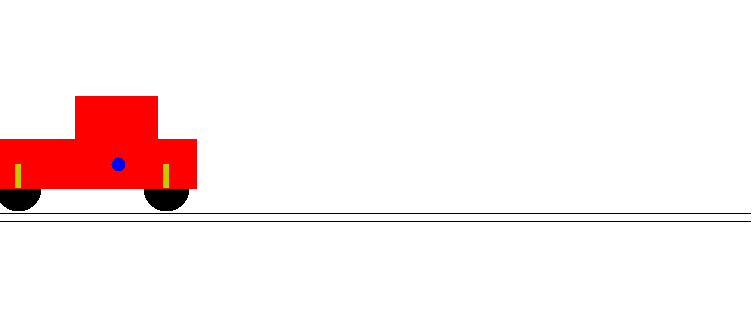 Now the situation after a braking of the car, in order to model this we take f1=f2=0 and g1=g2=-delta, and we stop the advancing of the car in the animation, without shock absoption b=0.0