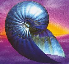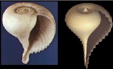 Las tres caracolas del lado derecho tienen sólo risos paralelos a la curva generadora. Las tres caracolas del lado izquierdo muestran una especie de grilla en relieve, estas fueron obtenidas superponiendo risos paralelos a la curva generadora y a la dirección de crecimiento. ![]() ![]() ![]() |